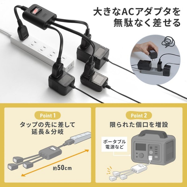 サンワサプライ 一括集中スイッチ付き電源延長コード 3分岐 2P 3個口 ブラック TAP-EX3SWBK 1個(ご注文単位1個)【直送品】