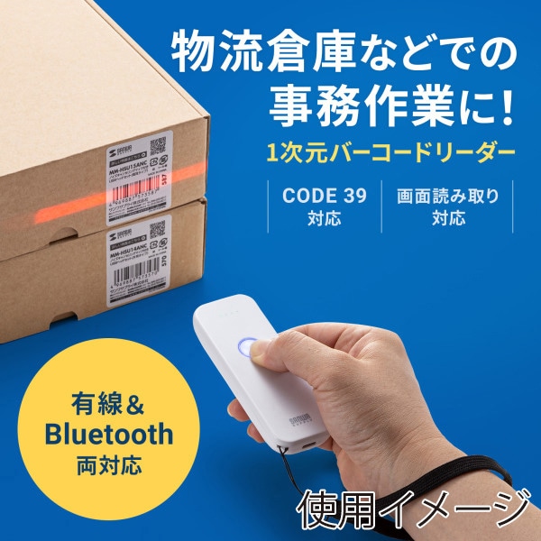 サンワサプライ 1次元バーコードリーダー Bluetooth対応 BCR-BT1D8W 1個(ご注文単位1個)【直送品】