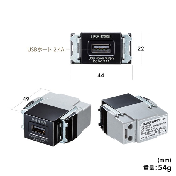 サンワサプライ 埋込USB給電用コンセント 1ポート用 ブラック TAP-KJUSB1BK 1個(ご注文単位1個)【直送品】