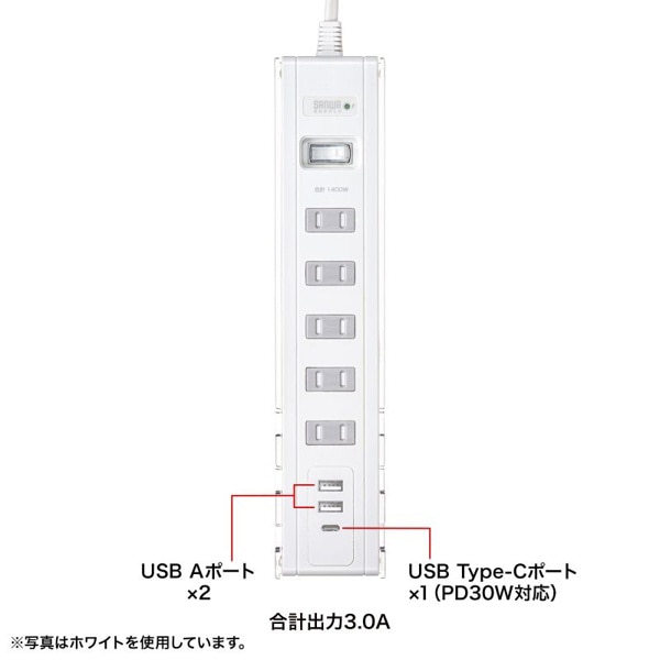 サンワサプライ USB充電機能付き電源タップ スタンド付き 2P 5個口 1.5m ブラック TAP-B47UC-15BK 1個(ご注文単位1個)【直送品】