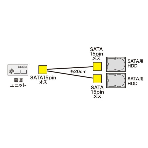 サンワサプライ シリアルATA電源2分岐ケーブル 20cm TK-PWSATA10-02 1個(ご注文単位1個)【直送品】