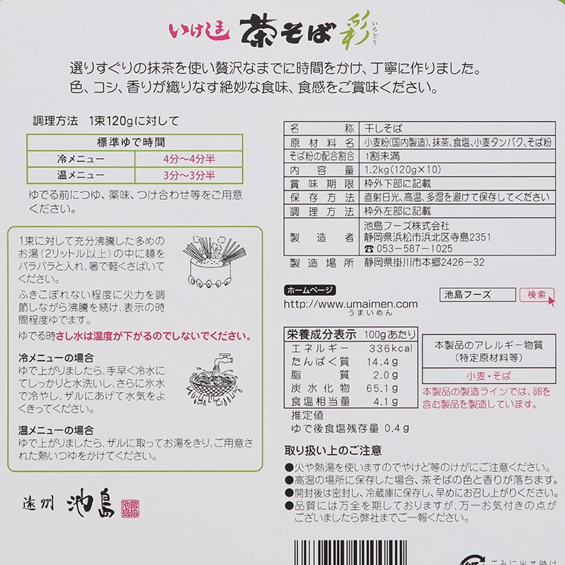 池島フーズ 乾麺 茶そば 彩 120g×10袋 常温 1袋※軽(ご注文単位1袋)※注文上限数12まで【直送品】