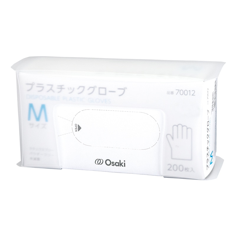 オオサキメディカル プラスチックグローブ L 70013 200枚入/箱(ご注文単位12箱)【直送品】