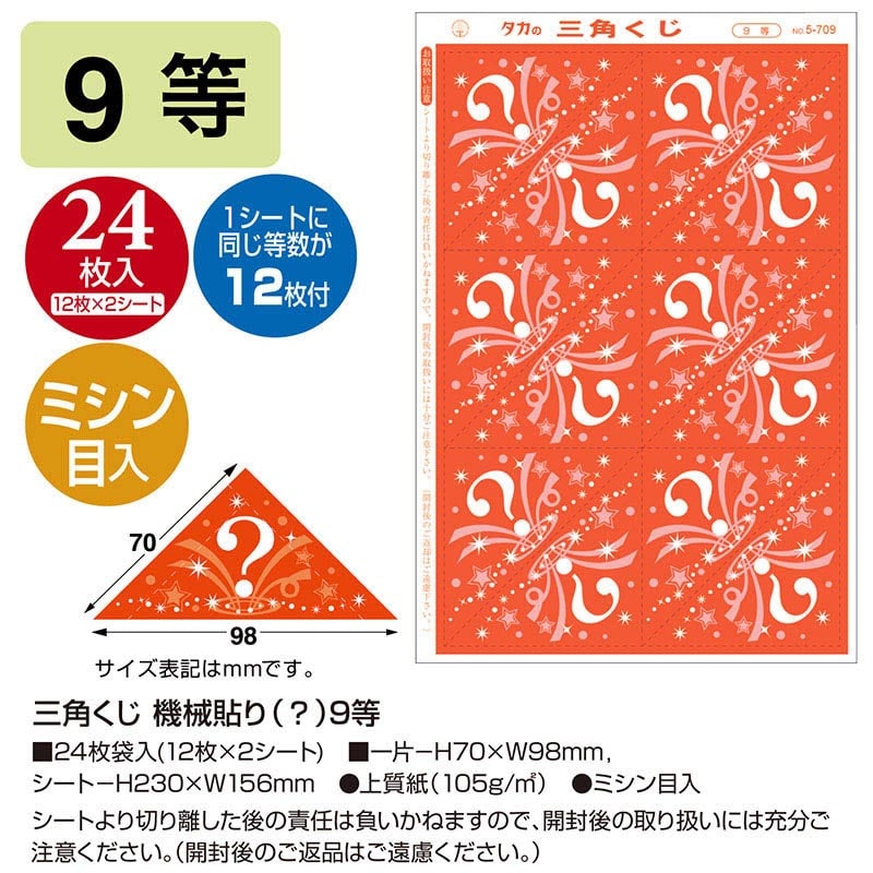 ササガワ 三角くじ 機械貼り 9等 5-709 24枚 1冊(ご注文単位1冊)【直送品】