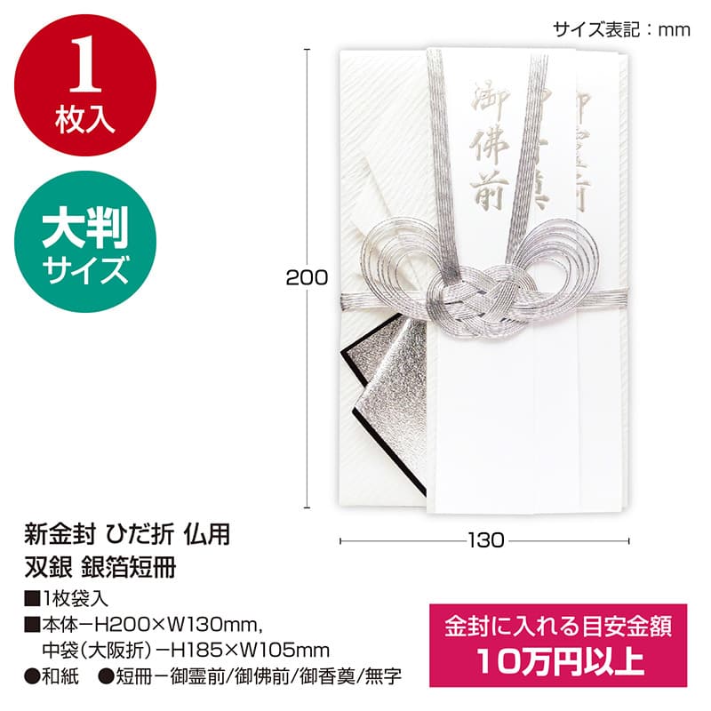 双銀10本 金封 ハスなし 短冊付 1枚(ご注文単位1枚)【直送品】