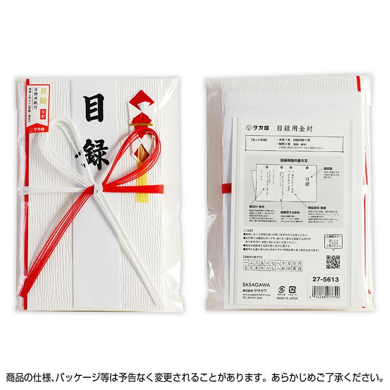 ササガワ 新金封 目録用 大判 赤白 27-5613 1枚(ご注文単位5枚)【直送品】
