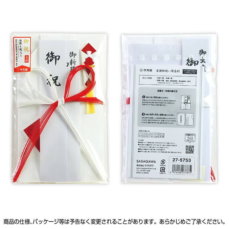 ササガワ 新金封 祝用 OA短冊付 27-5561 1枚(ご注文単位5枚)【直送品】