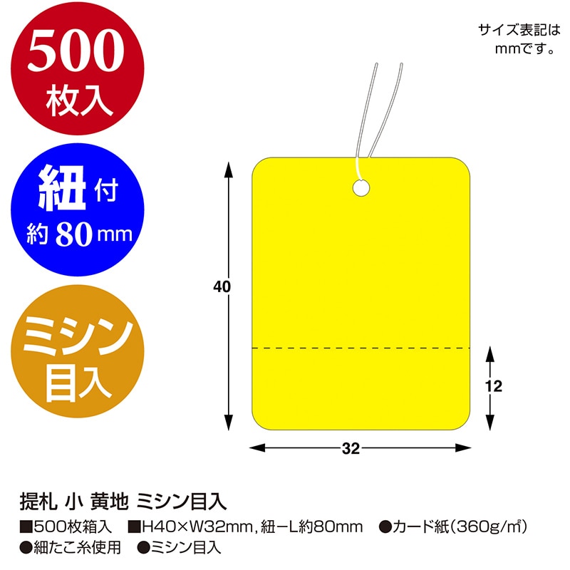 ササガワ 提札 小 黄地 ミシン目入 18-122 500枚 1箱(ご注文単位1箱)【直送品】