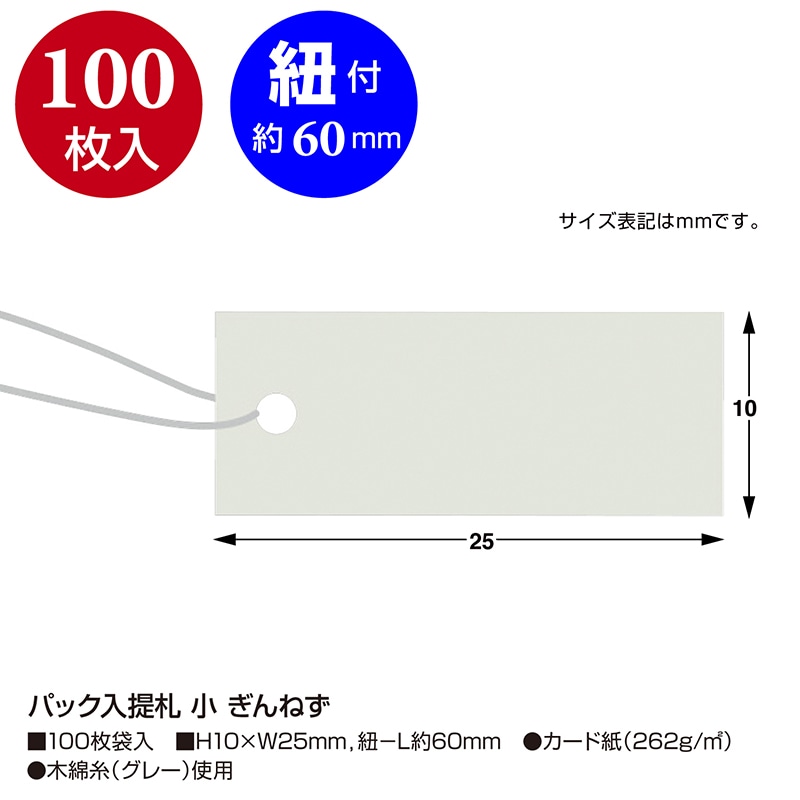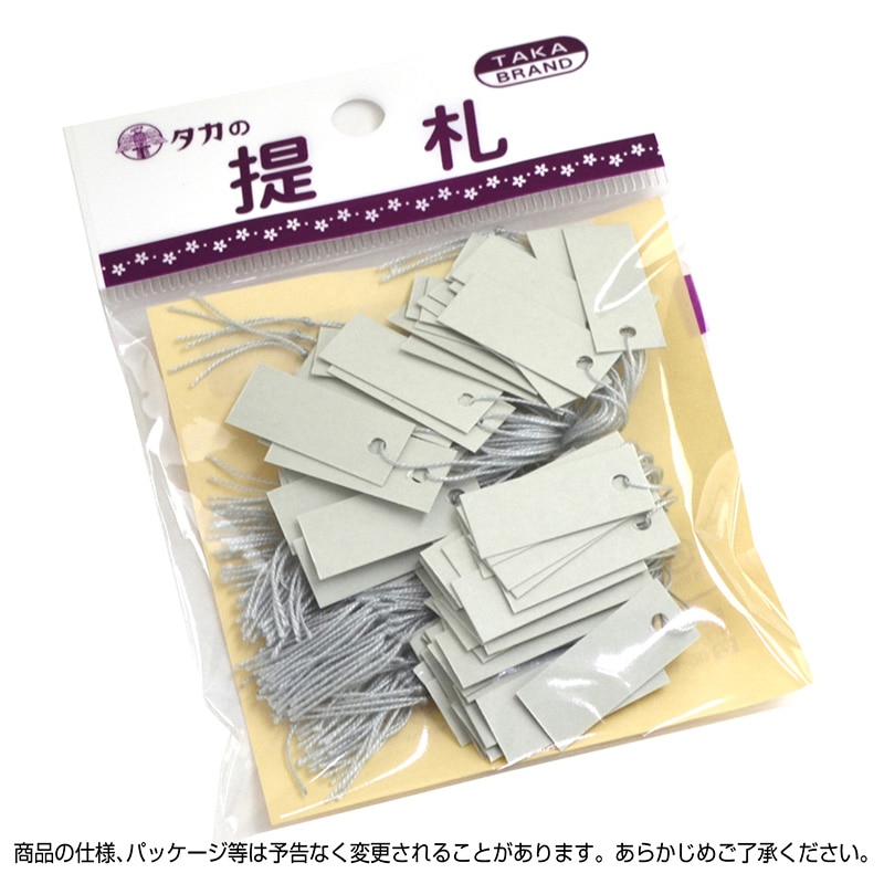 優しいねずみ色の色合いで落ち着いた雰囲気が特徴の長型糸付き値札です。POP用品として値札やフリーマーケット・イベント等で活躍します。便利な糸付き値札は時計や貴金属などのアクセサリー用にお使いいただけます。シンプルなデザインなので、どんな商品にも合います。●木綿糸(グレー)使用●入数:100枚
