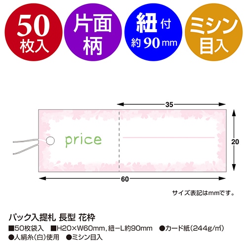 ササガワ パック入提札 長型 花枠 19-710 50枚/袋