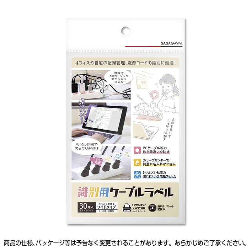 ササガワ プリンター対応識別用ケーブルラベル ワイド 24-2001 1冊(ご注文単位1冊)【直送品】