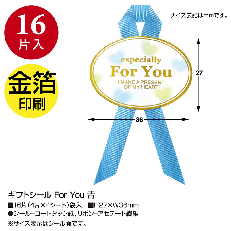 ササガワ ギフトシール For You 青 22-918 16片 1冊(ご注文単位10冊)【直送品】