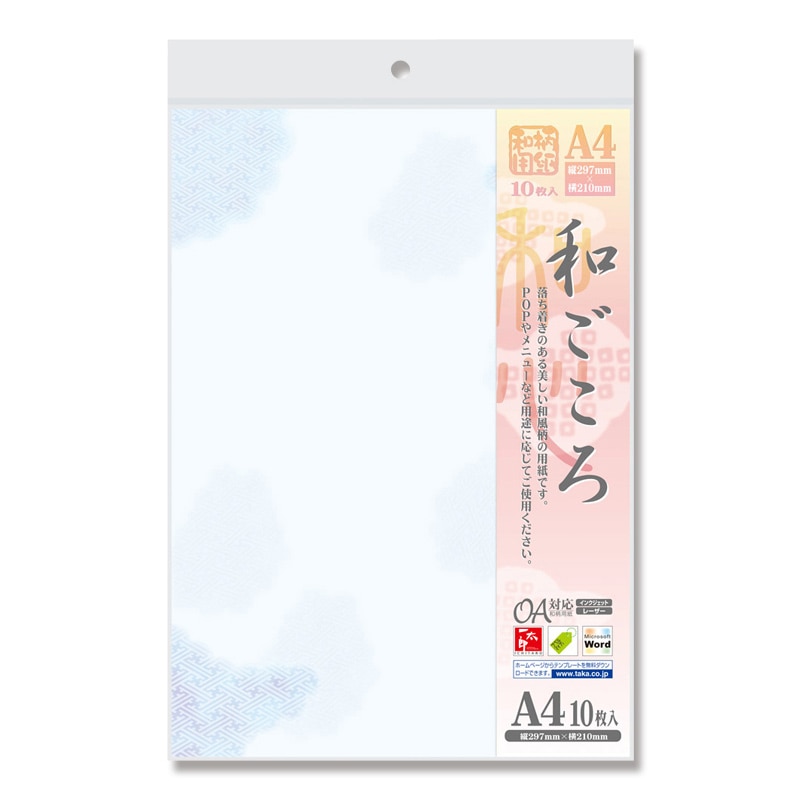 ササガワ 和柄OA用紙 和ごころ A4サイズ 1冊10枚入り 4-1001 青紗綾雲 1冊(ご注文単位5冊)【直送品】