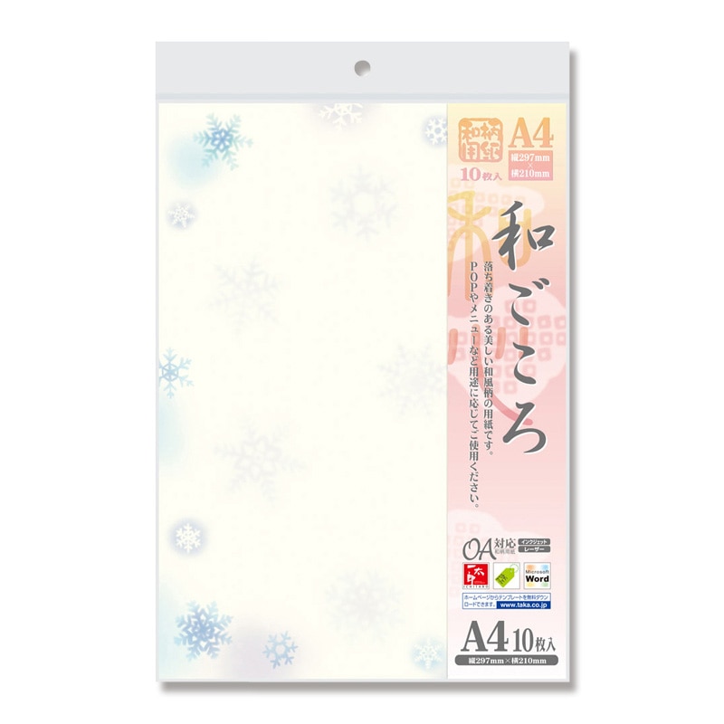 ササガワ 和柄OA用紙 和ごころ A4サイズ 1冊10枚入り 4-1011 雪の結晶 1冊(ご注文単位5冊)【直送品】