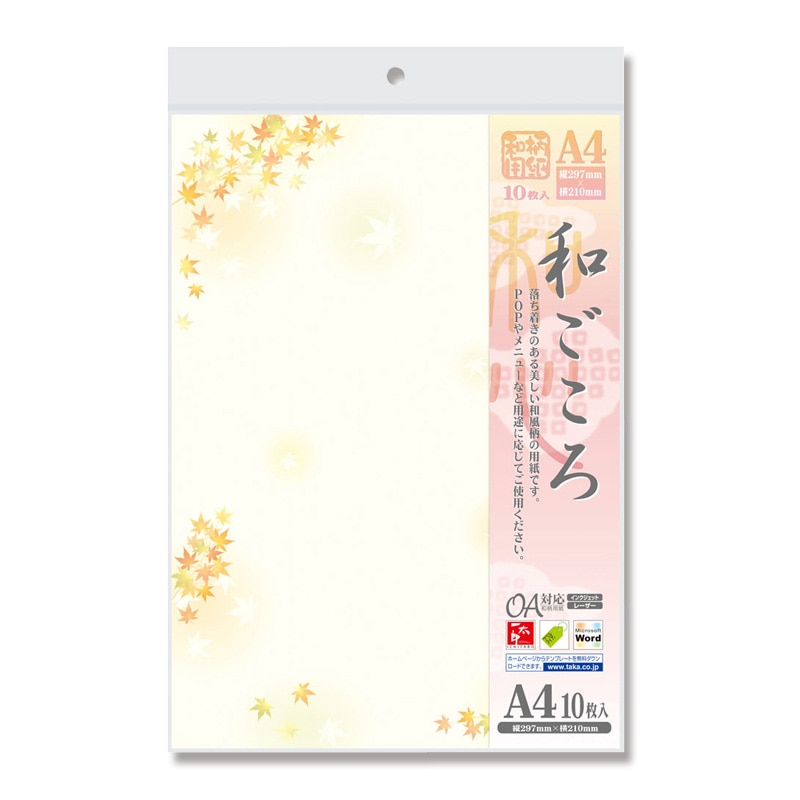 ササガワ 和柄OA用紙 和ごころ A4サイズ 1冊10枚入り 4-1022 枝紅葉 1冊(ご注文単位5冊)【直送品】