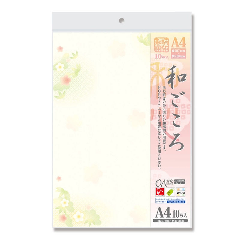 ササガワ 和柄OA用紙 和ごころ A4サイズ 1冊10枚入り 4-1023 松竹梅 1冊(ご注文単位5冊)【直送品】