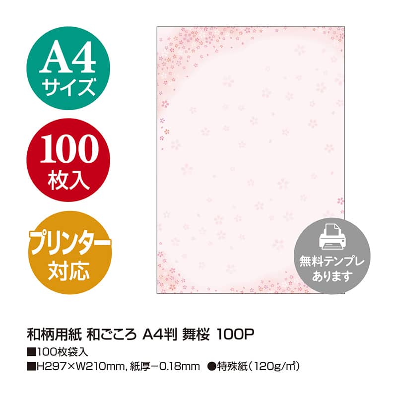 ササガワ 和柄用紙 和ごころ A4判 舞桜 100枚入 4-1912 1冊(ご注文単位1冊)【直送品】