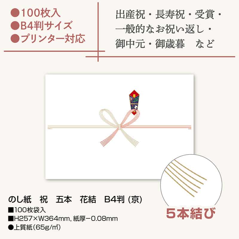 ササガワ のし紙 祝 五本 花結 B4判 京 2-5204 1冊(ご注文単位5冊)【直送品】