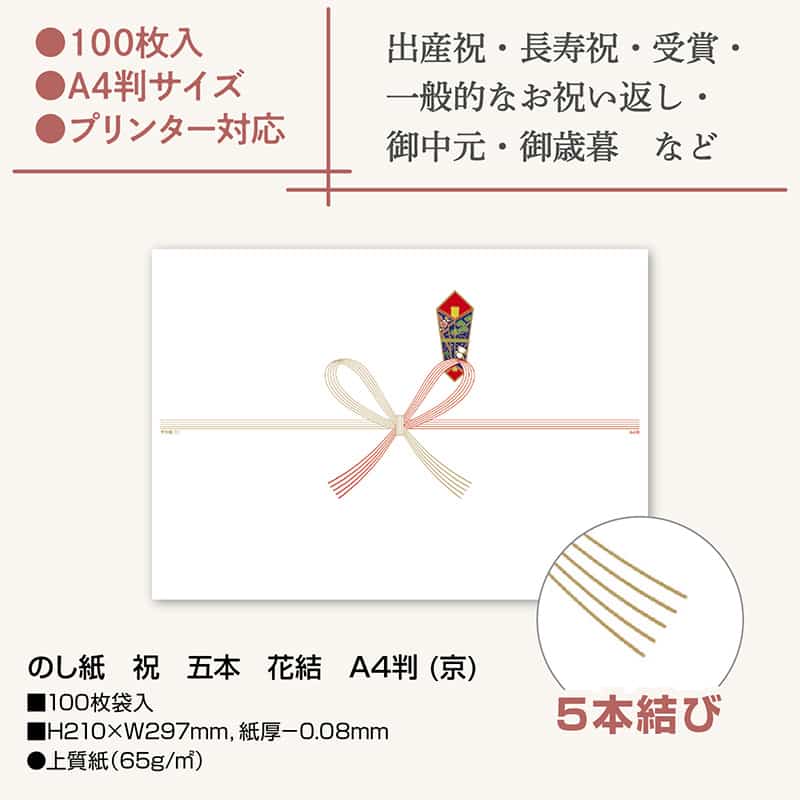 ササガワ のし紙 祝 五本 花結 A4判 京 2-5206 1冊(ご注文単位5冊)【直送品】