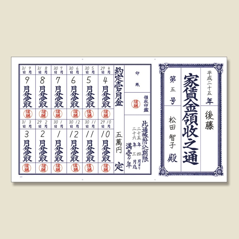ササガワ 通帳 家賃通 1年用1枚もの 1冊100枚入り 9-30 家賃通 1枚もの 1年用 1冊(ご注文単位1冊)【直送品】