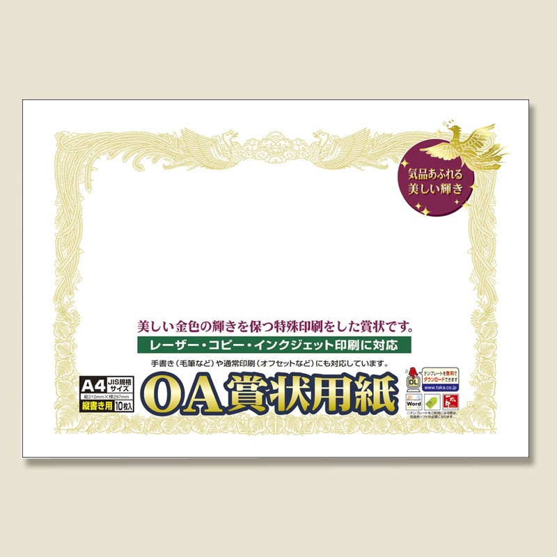 ササガワ 賞状用紙 A4縦書用 1冊10枚袋入 10-1060 賞状 白 A4縦書 1冊(ご注文単位10冊)【直送品】
