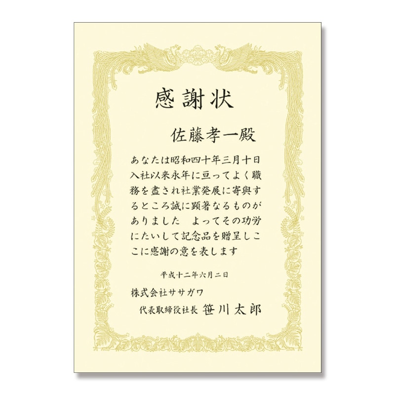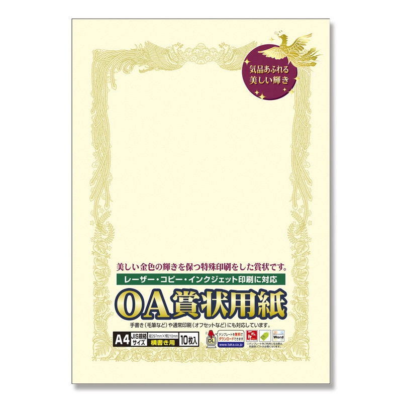 ササガワ 賞状用紙 A4横書用 1冊10枚袋入 10-1068 クリーム A4横書 1冊(ご注文単位10冊)【直送品】