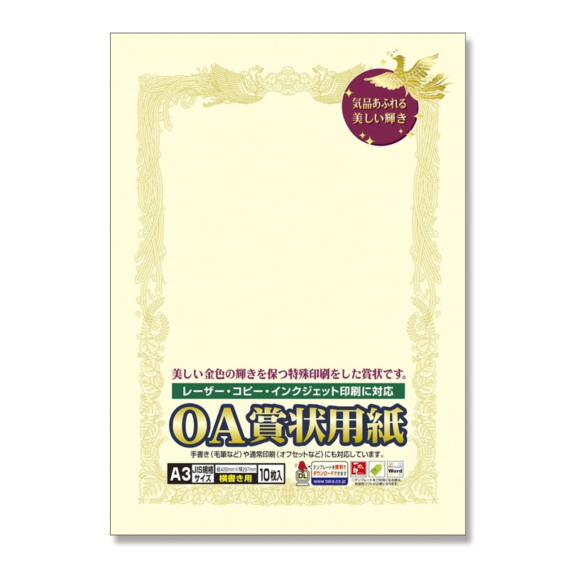 ササガワ 賞状用紙 A3横書用 1冊10枚袋入 10-1088 クリーム A3横書 1冊(ご注文単位10冊)【直送品】