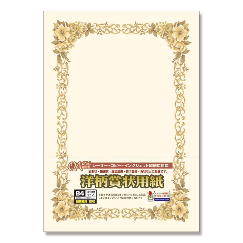 ササガワ 賞状用紙 B4判 1冊10枚袋入 10-272 洋柄 B4判 縦横兼用 1冊(ご注文単位5冊)【直送品】