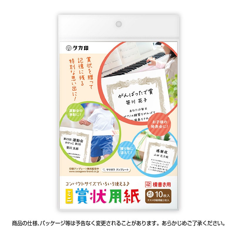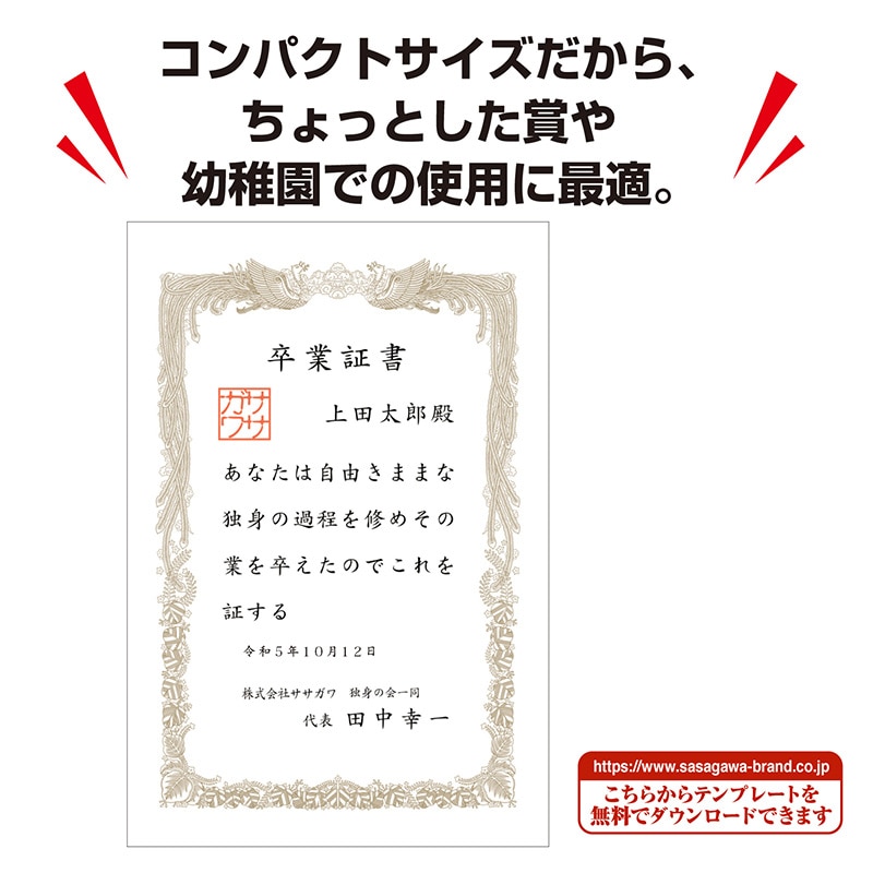 ササガワ ミニ賞状用紙 横書用 A5判 10-1551 10枚 1冊(ご注文単位5冊)【直送品】