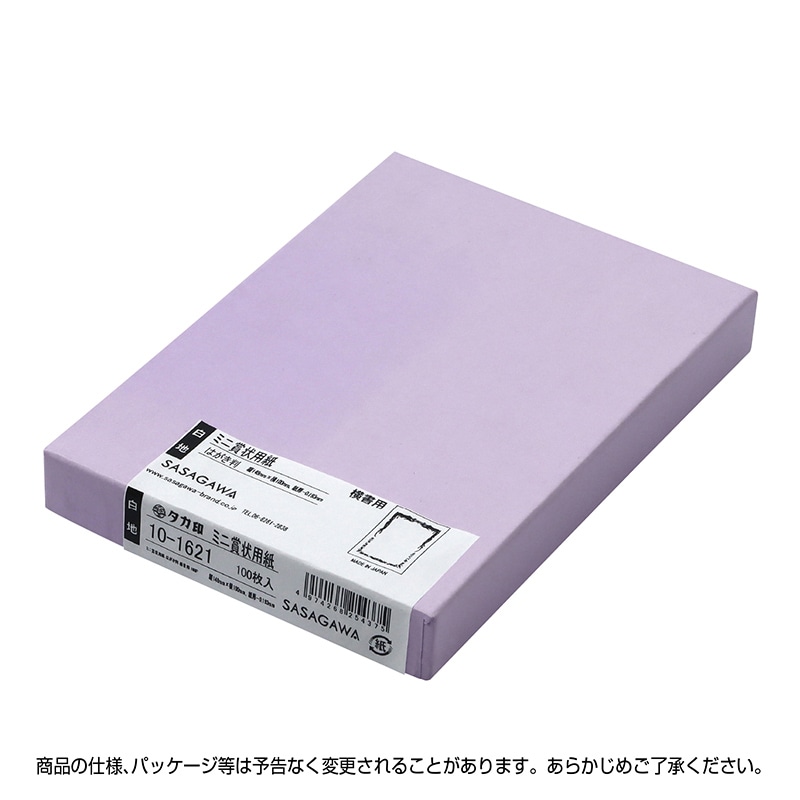 ササガワ ミニ賞状用紙 横書用 はがき判 10-1621 100枚 1箱(ご注文単位1箱)【直送品】