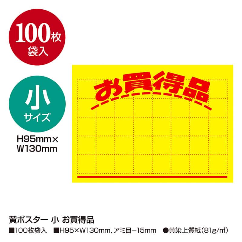 ササガワ 黄ポスター 小 100枚袋入 11-1700 小 赤枠¥入り 1冊(ご注文単位1冊)【直送品】