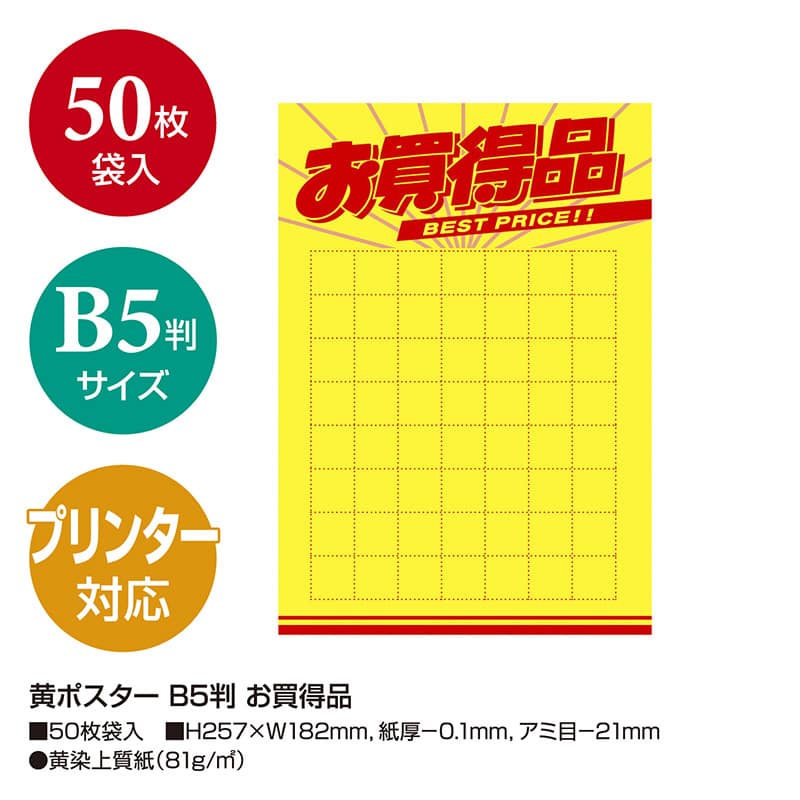 ササガワ 黄ポスター B5判 お買得品 11-2922 1冊(ご注文単位1冊)【直送品】