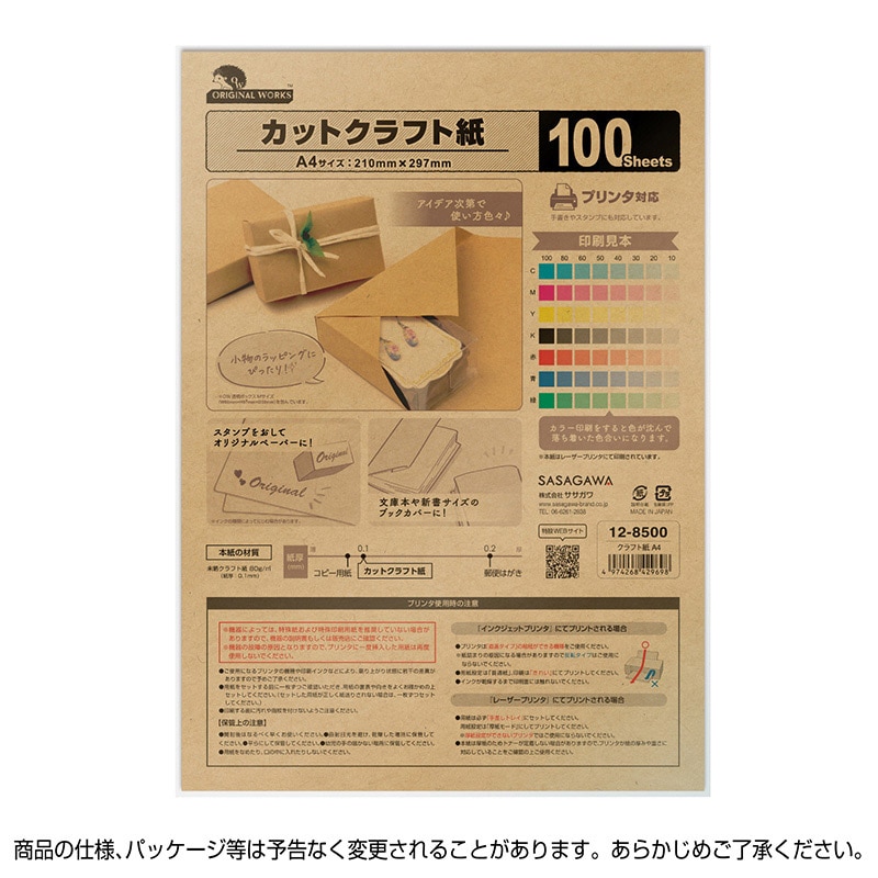 ササガワ カットクラフト紙 A4 12-8500 100枚 1冊(ご注文単位1冊)【直送品】