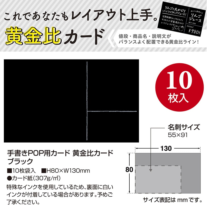 ササガワ 手書きPOP用カード 黄金比カード ブラック 16-1756 10枚/冊
