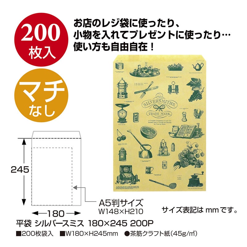 ササガワ 平袋 シルバースミス 中 200枚 50-1509 1包(ご注文単位1包)【直送品】