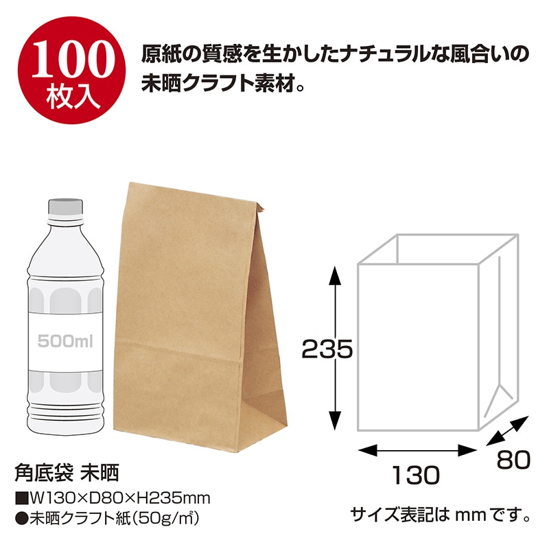 ササガワ 角底袋 未晒 中 100枚 50-3201 1包(ご注文単位1包)【直送品】