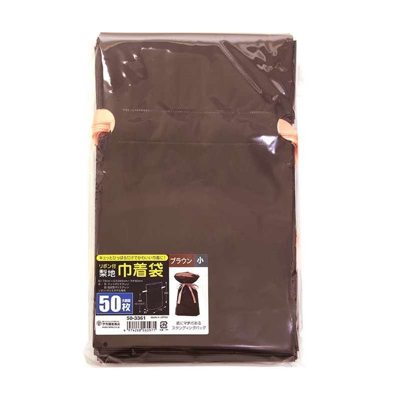 ササガワ 巾着袋 ブラウン 小 50枚 50-3361 1包(ご注文単位1包)【直送品】