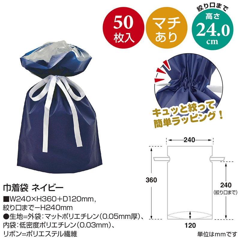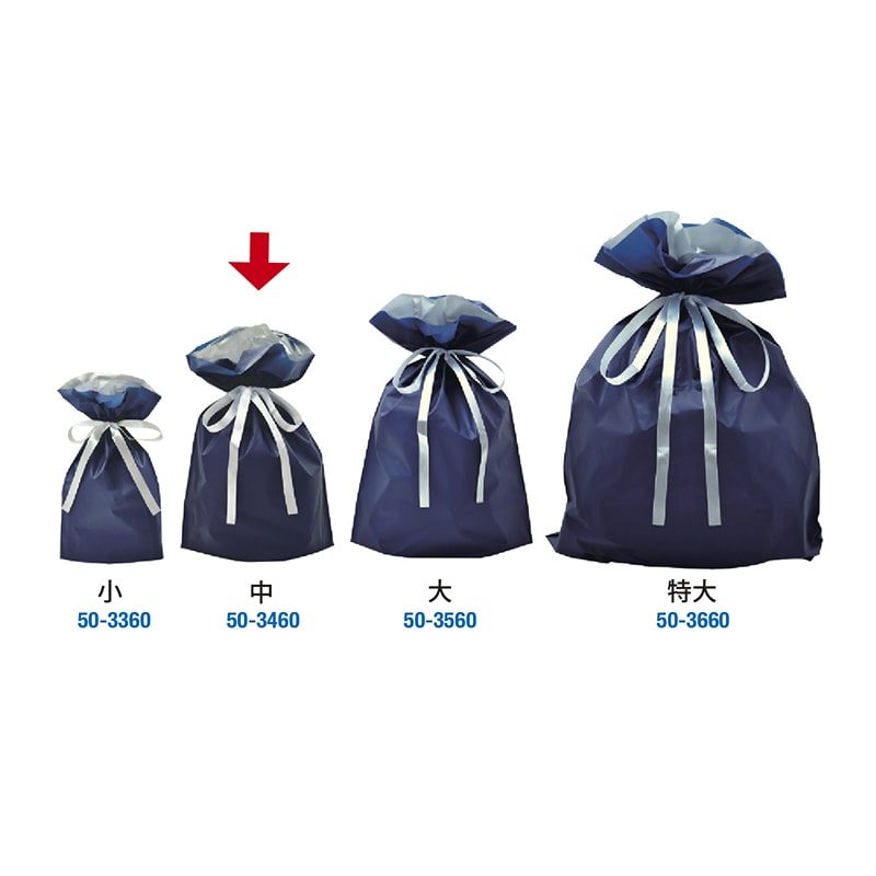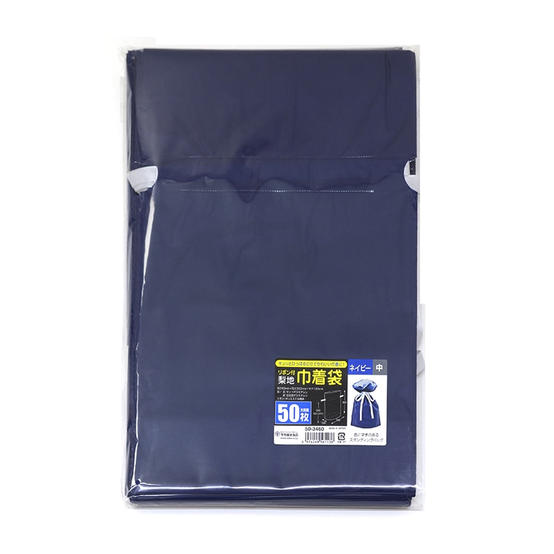 ササガワ 巾着袋 ネイビー 中 50枚 50-3460 1包(ご注文単位1包)【直送品】