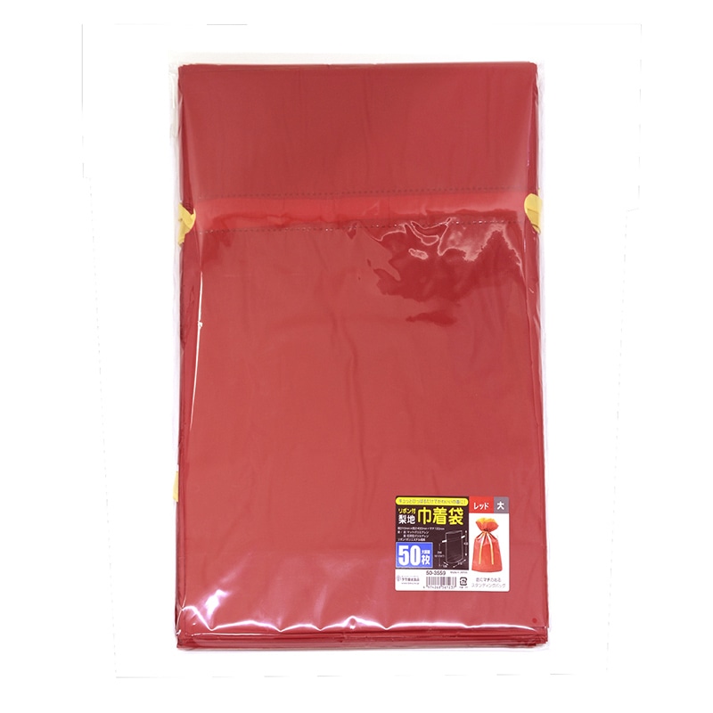 ササガワ 巾着袋 レッド 大 50枚 50-3559 1包(ご注文単位1包)【直送品】