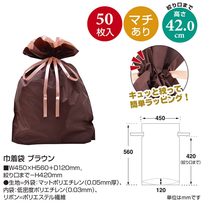 ササガワ 巾着袋 ブラウン 特大 50枚 50-3661 1包(ご注文単位1包)【直送品】