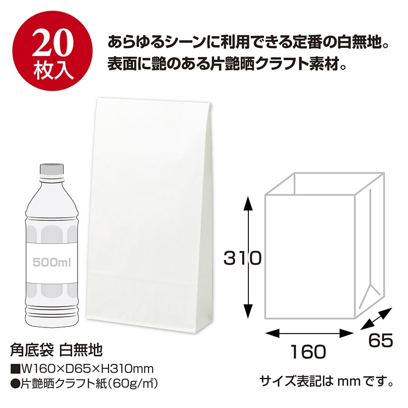 ササガワ 角底袋 白無地 特大 20枚 50-4500 1束(ご注文単位5束)【直送品】