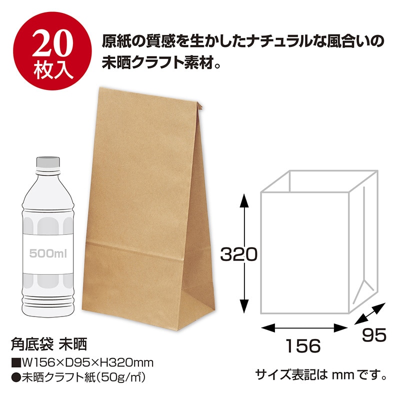 ササガワ 角底袋 未晒 特大 20枚 50-4501 1束(ご注文単位5束)【直送品】