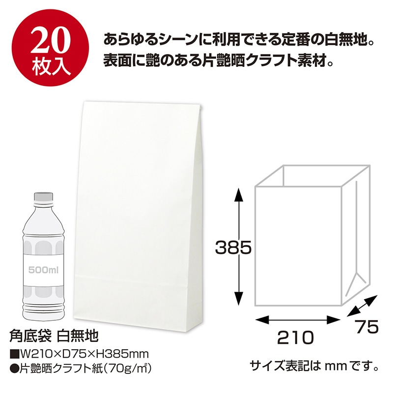 ササガワ 角底袋 白無地 特々大 20枚 50-4800 1束(ご注文単位5束)【直送品】
