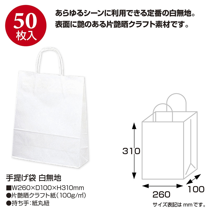 ササガワ 手提げ紙袋 白無地 小 50枚 50-5100 1包(ご注文単位1包)【直送品】