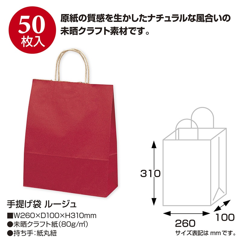 ササガワ 手提げ紙袋 ルージュ 小 50枚 50-5106 1包(ご注文単位1包)【直送品】