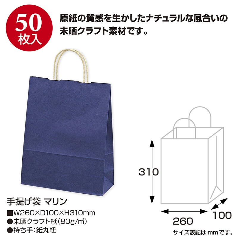 ササガワ 手提げ紙袋 マリン 小 50枚 50-5107 1包(ご注文単位1包)【直送品】