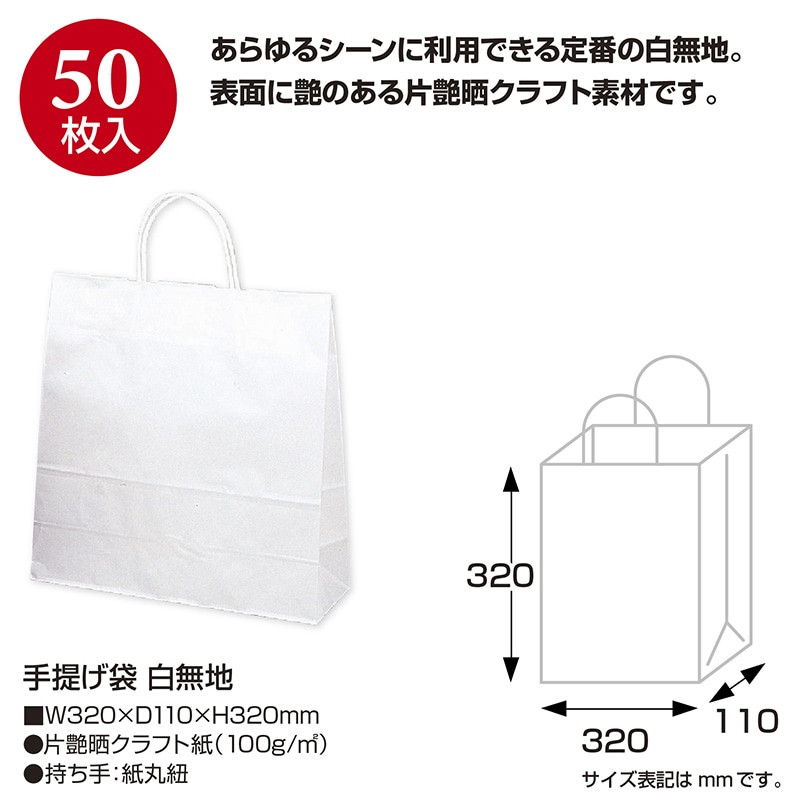 ササガワ 手提げ紙袋 白無地 中 50枚 50-5200 1包(ご注文単位1包)【直送品】