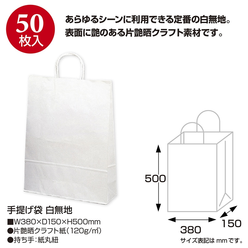 ササガワ 手提げ紙袋 白無地 特大 50枚 50-5400 1包(ご注文単位1包)【直送品】