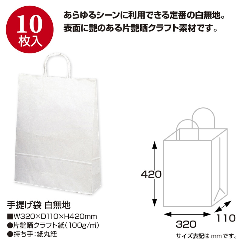 ササガワ 手提げ紙袋 白無地 大 10枚 50-6300 1包(ご注文単位1包)【直送品】