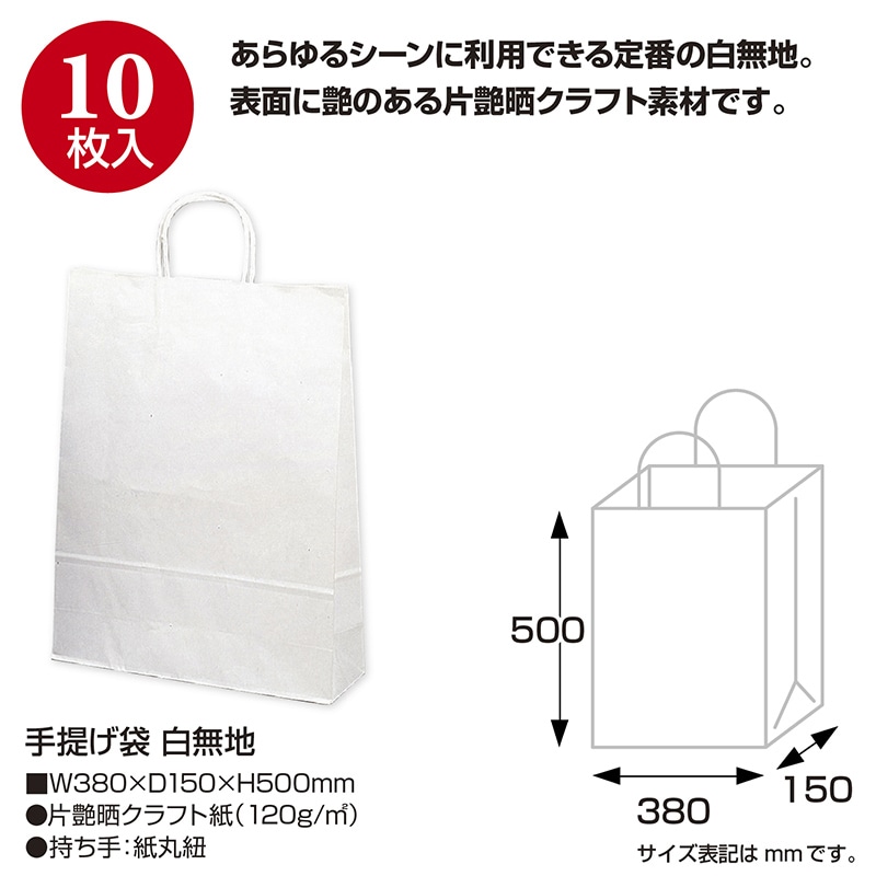 ササガワ 手提げ紙袋 白無地 特大 10枚 50-6400 1包(ご注文単位1包)【直送品】